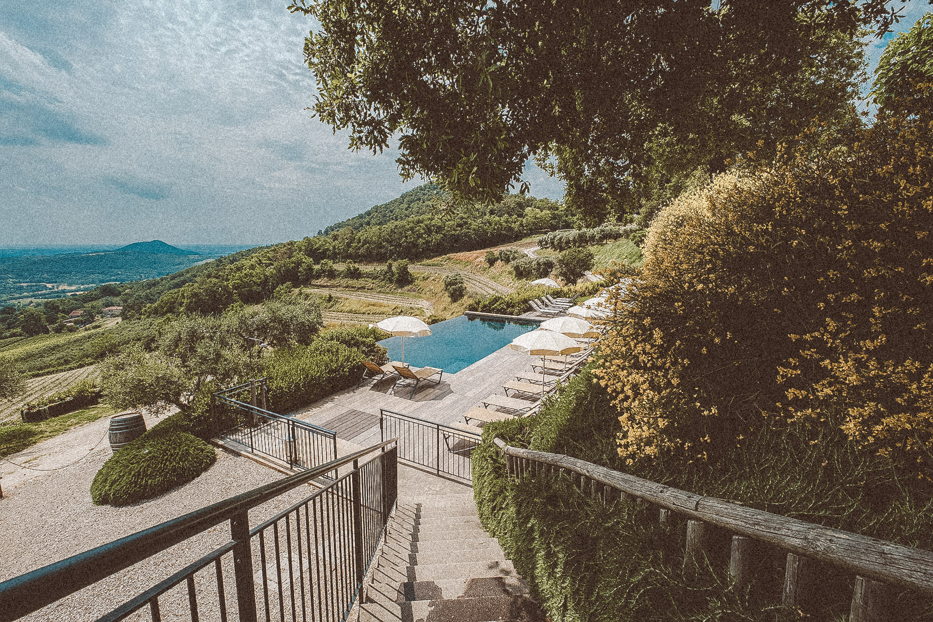 Lasciati conquistare dall’ospitalità del nostro Wine Relais: rilassati immerso nella natura sorseggiando un buon calice di vino a bordo piscina.